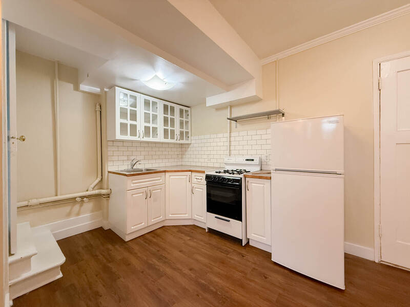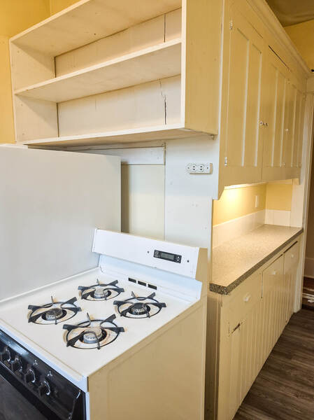 Fridge, gas stove, shared coin laundry. One Year Tenancy Agreement to start, Month-To-Month automatically afterwards. Off-street parking, $75/month, subject to availability. (City may have a parking permit available for street parking)