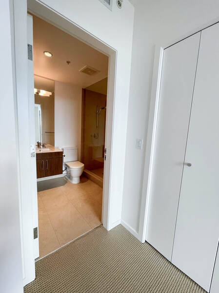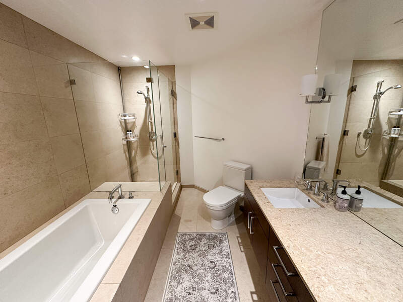 The spacious primary bedroom offers views of the Olympic mountain tops and features a 5-piece ensuite. All 3 bedrooms in this unit have their own ensuite.